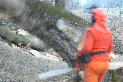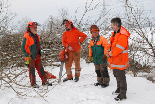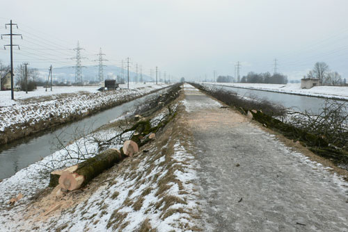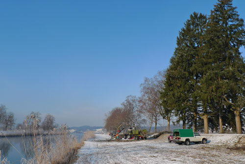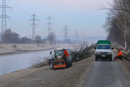 | Entfernung der Dammbestockung Unzählige Bäume müssen aus den Dammanlagen des Linthwerks entfernt werden. Die Linthverwaltung hat seit 1999 bereits über 1000 Bäume gefällt. Die Arbeit ist noch lange nicht abgeschlossen. (Bilder M. Jud) | ||||||||