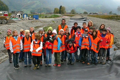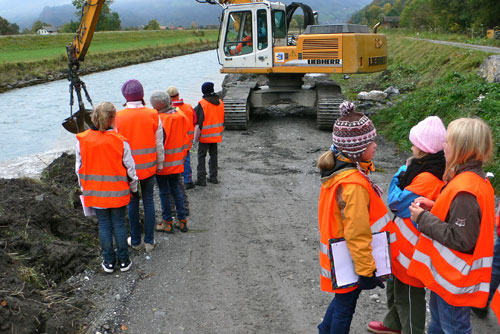 Baustellenbesuch der 5. Primarklasse Niederurnen als Exkursion zum Thema Linthwerk.