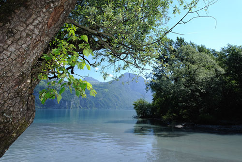 | Das Gäsi am Walensee Das Gebiet Gäsi mit der Mündung des Escherkanals, dem Wald und dem ganzen Seeufer ist auch ein Teil des Linthwerks. Die verschiedenen Ansprüche sind in einem gemeinsam erarbeiteten Nutzungs- und Schutzkonzept geregelt. (Bilder M. Jud) | ||||||||
