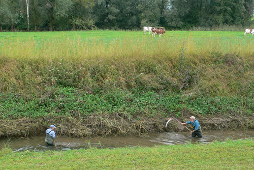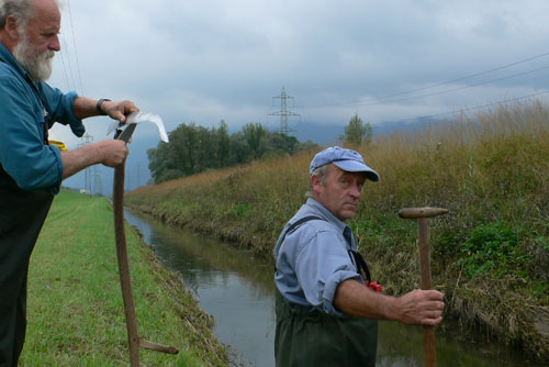 | Linthaufseher Die Linthaufseher besorgen den laufenden Unterhalt und überwachen die Werkanlagen. Nach der Realisierung des Linthprojekts sind die Aufgaben und deren Ausführung neu festzulegen. Dazu hat die Linthverwaltung bereits während der Planungsphase ein übergeordnetes Unterhaltskonzept erarbeiten lassen. (Bilder M. Jud) | ||||||||