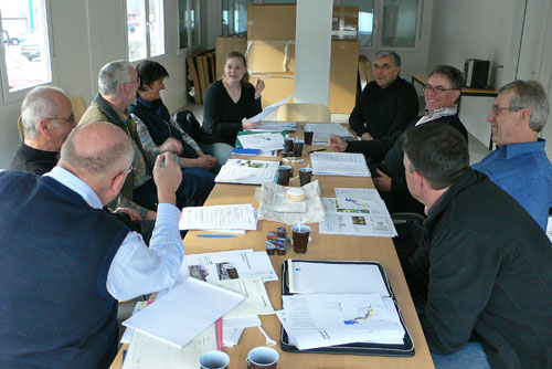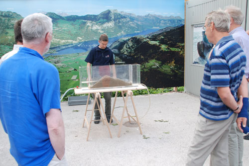 | Linthwerkführer Für die Exkursionen, Vorträge und Führungen werden seit Frühjahr 2009 freiwillige Linthwerkführer eingesetzt. Die Linthverwaltung hat diese Führer zusammen mit Vertretern der Oberbauleitung ausgebildet und ausgerüstet. Bereits im ersten Jahr besuchten über 1300 Personen das Linthwerk. (Bilder M. Jud) |