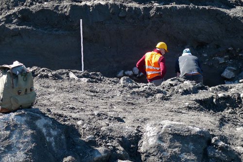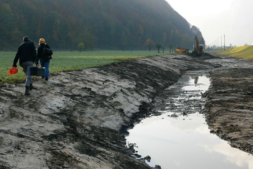 | Fachgruppe Denkmalpflege Die Bauarbeiten werden von der Fachgruppe Denkmalpflege begleitet. In dieser Fachgruppe sind die Denkmalpfleger der Linthkantone vertreten. Entsprechend den Auflagen der Baubewilligungen besteht zudem seit Baubeginn eine archäologische Baubegleitung. Die Fachgruppe und die Spezialisten der Baubegleitung sind dafür besorgt, dass Fundstücke aber auch das Bauwerk selber für die Nachwelt dokumentiert werden. (Bilder M. Jud) |