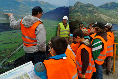 Das Projekt Linth 2000 stösst auf ein sehr grosses Interesse. Seit Baubeginn haben über 12’800 Personen die Linth besucht. Das Besucherfeld ist sehr breit und umfasst Schulen, Vereine, Verwaltung, Firmen und zwischendurch auch Kantonsregierungen und sogar Fachleute aus China. (Bilder M. Jud)