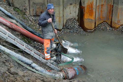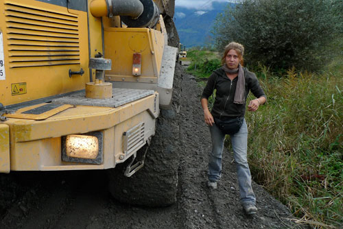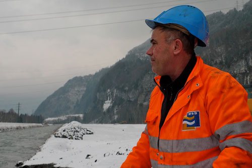 Fünf Porträts von hart arbeitenden Bauarbeitern. (Bilder M. Jud)