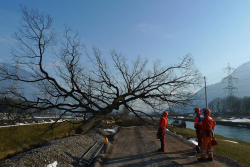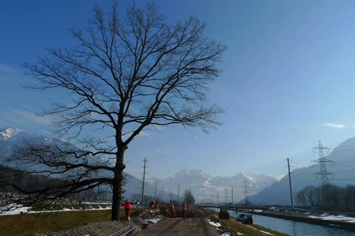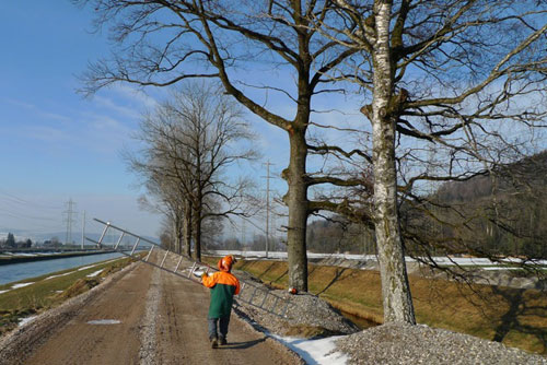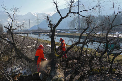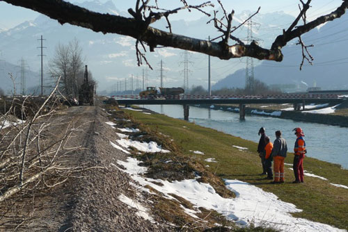 Wegen der Bauarbeiten für die Dammverstärkungen müssen alle Bäume entlang dem Linthkanal zwischen Hänggelgiessen und Grynau entfernt werden. Neu sind an ausgewählten Uferabschnitten der Linth und der Seitengräben Ufergebüsche möglich. Dämme werden massvoll mit Einzelbüschen und Bäumen bepflanzt. Grosse Bäume sind aus Gründen der Dammsicherheit nur an bestimmten Orten oder mit besonderen Schutzmassnahmen möglich. Mit der Neuanpflanzung wurde im Herbst 2010 begonnen. (Bilder M. Jud)
