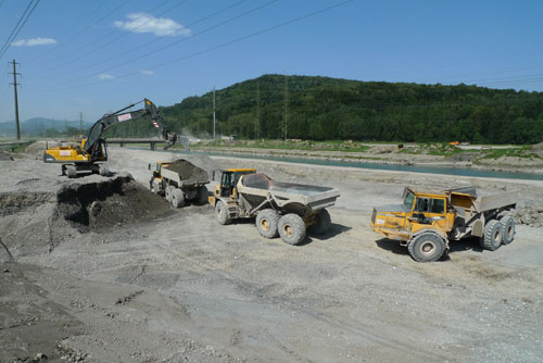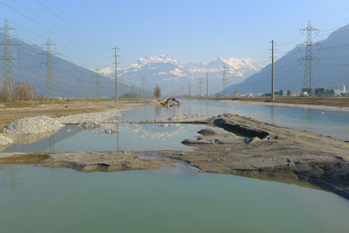 Flussaufweitung Hänggelgiessen Impressionen vom Bau der Flussaufweitung Hänggelgiessen am Linthkanal. (Bilder M. Jud)